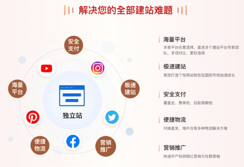 而獨立站擁有自主權(quán),直接連接消費者和賣家,不受制于任何平臺,賣家自己掌握制定規(guī)則,靈活性強。其次,你可以完全的控制自己的品牌,可以采取很靈活的方式來做營銷活動的設(shè)計和宣傳,這些不會因為第三方的一些政策或規(guī)則的變化而受到掣肘。最主要的是你可以塑造品牌,建立品牌壁壘和產(chǎn)生品牌溢價,擺脫價格戰(zhàn)深淵,有利于穩(wěn)定長期的發(fā)展。而且,賣家您還可以積累自己的用戶,用來做后續(xù)持續(xù)的重復(fù)營銷和交叉銷售。