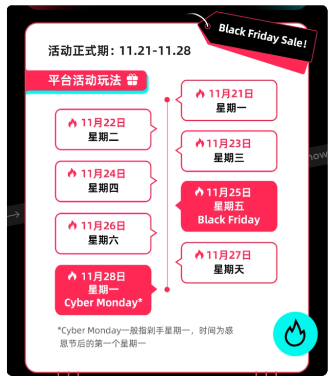 近日,TikTok官方公布了黑五大促活動(Black Friday Sale)營銷玩法和官方資源扶持,此次平臺將聯(lián)動英國、馬來西亞、新加坡和菲律賓四國大促資源,助推賣家產(chǎn)品大賣,活動正式期定在11月21日-11月28日。