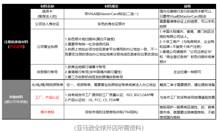 公司及個人材料:公司營業(yè)執(zhí)照掃描件(個人賣家無法通過歐洲站資質審核)、公司首要聯(lián)系人和受益人的身份證件、首要聯(lián)系人和受益人的個人費用賬單、銀行賬戶所有人證明、公司章程、授權函。